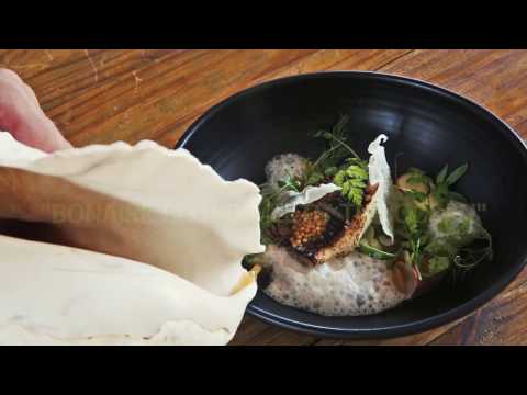 This dish actually consists out of four ingredients. Bonaire Blond beer, fennel, sea vegetables and fish. Fennel from the land and sea fennel from the sea, different sea vegetables and seaweed, red snapper and oyster mayonnaise, followed by three preparations of Bonaire Blonde; a gel, foam and mustard. What’s so special about this dish? The broth. This is made from the wort. They make a savoury dish out of it by adding fennel and sea vegetables.